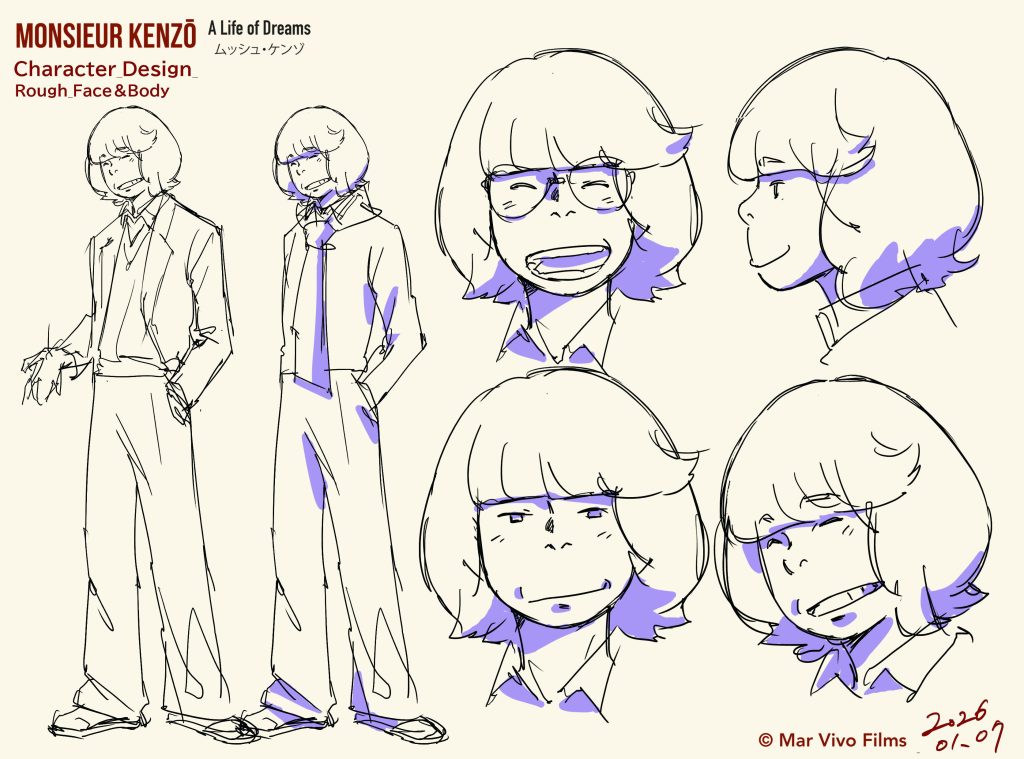 We’re sharing here some early sketches of our MONSIEUR KENZŌ as adult. Special thanks to our talented Japanese animé artist Haruna Gohzu (Demon Slayer, Pokemon series) who recently joined our Japan-based production team.